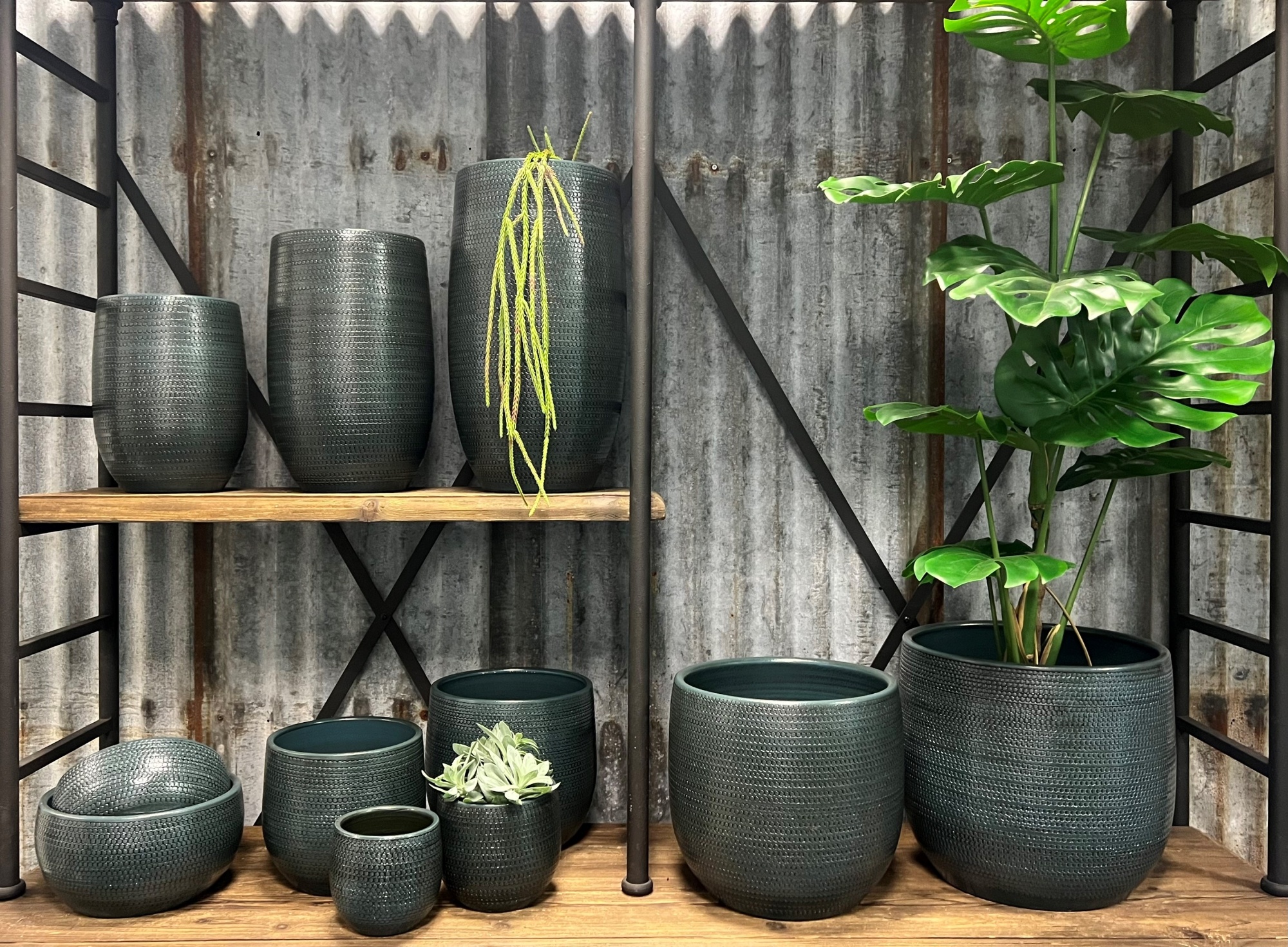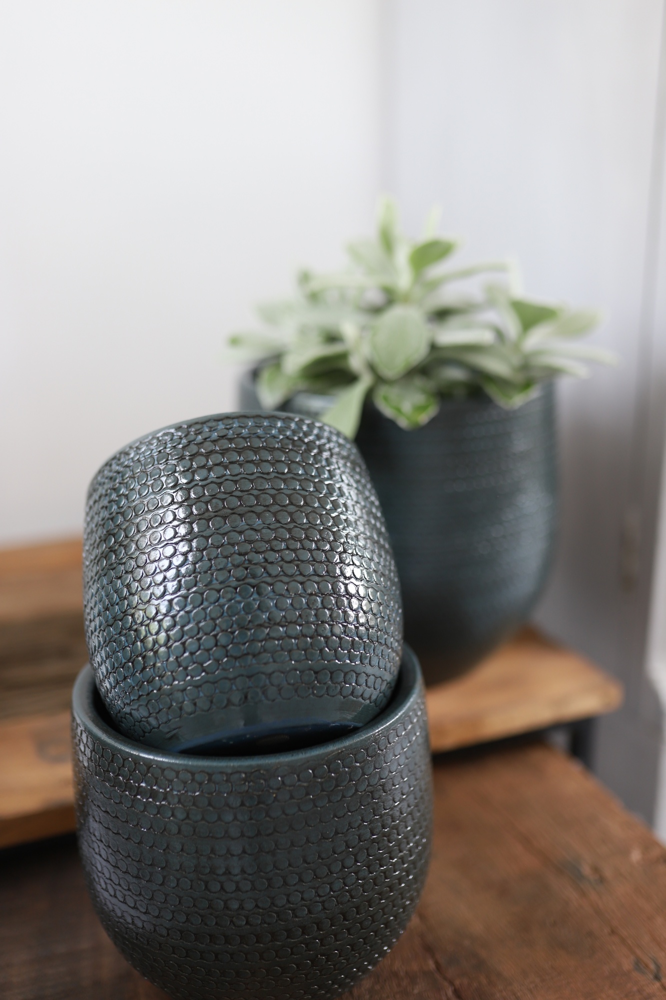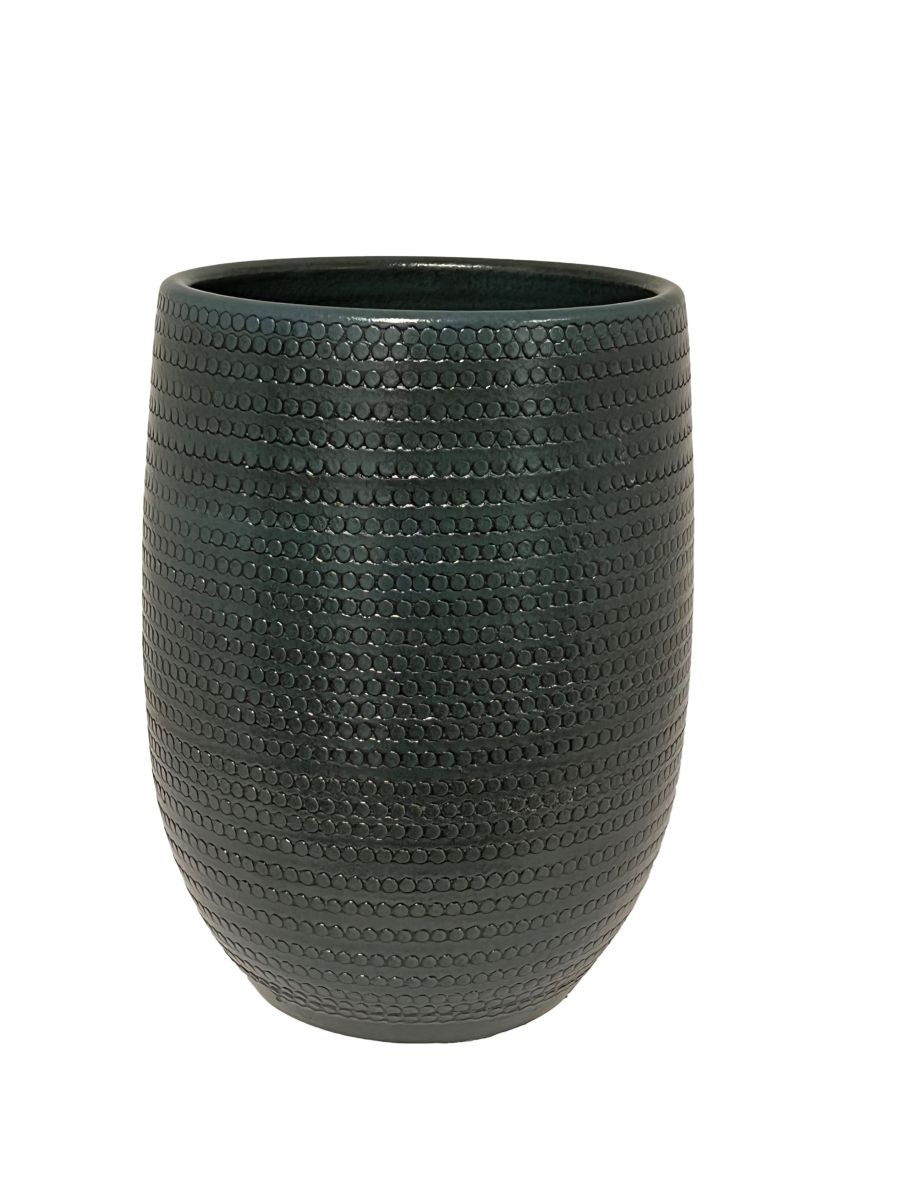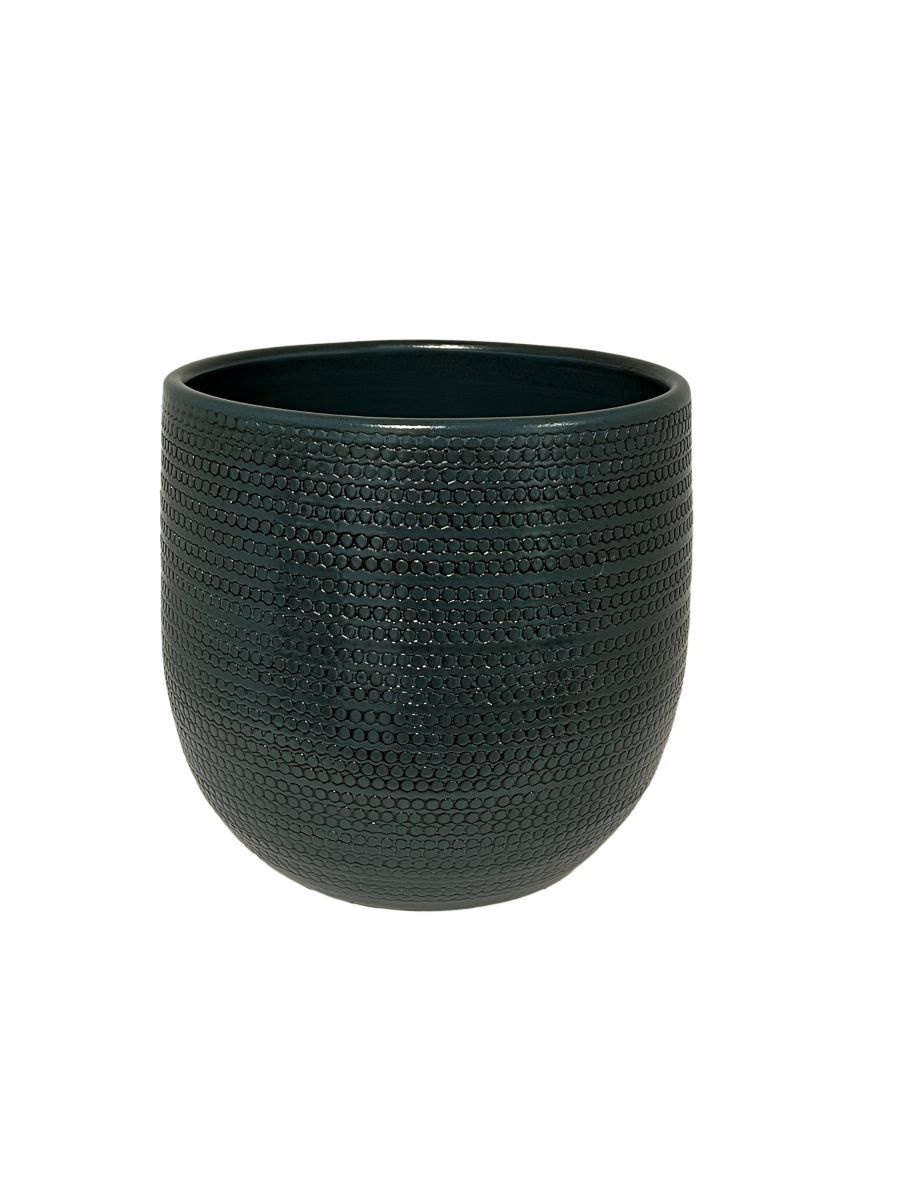 Blauwe potten in de lijn Dallas van HS Potterie zijn stoer en robuust te noemen. De gladde keramische buitenkant met ruw rond reliëf in de pot hebben een eigenzinnige uitstraling Lees meer