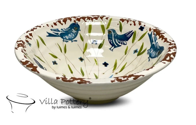 Deze keramische schaal van de Babette collectie heeft een veelzijdige zomerse, kleurrijke uitstraling, de schaal is met de hand geschilderd. Deze schaal is beschilderd met veelzijdige vogels en groene takken, de kleurrijke uitstraling geeft een gezellige sfeer en zal veel vreugde opleveren.