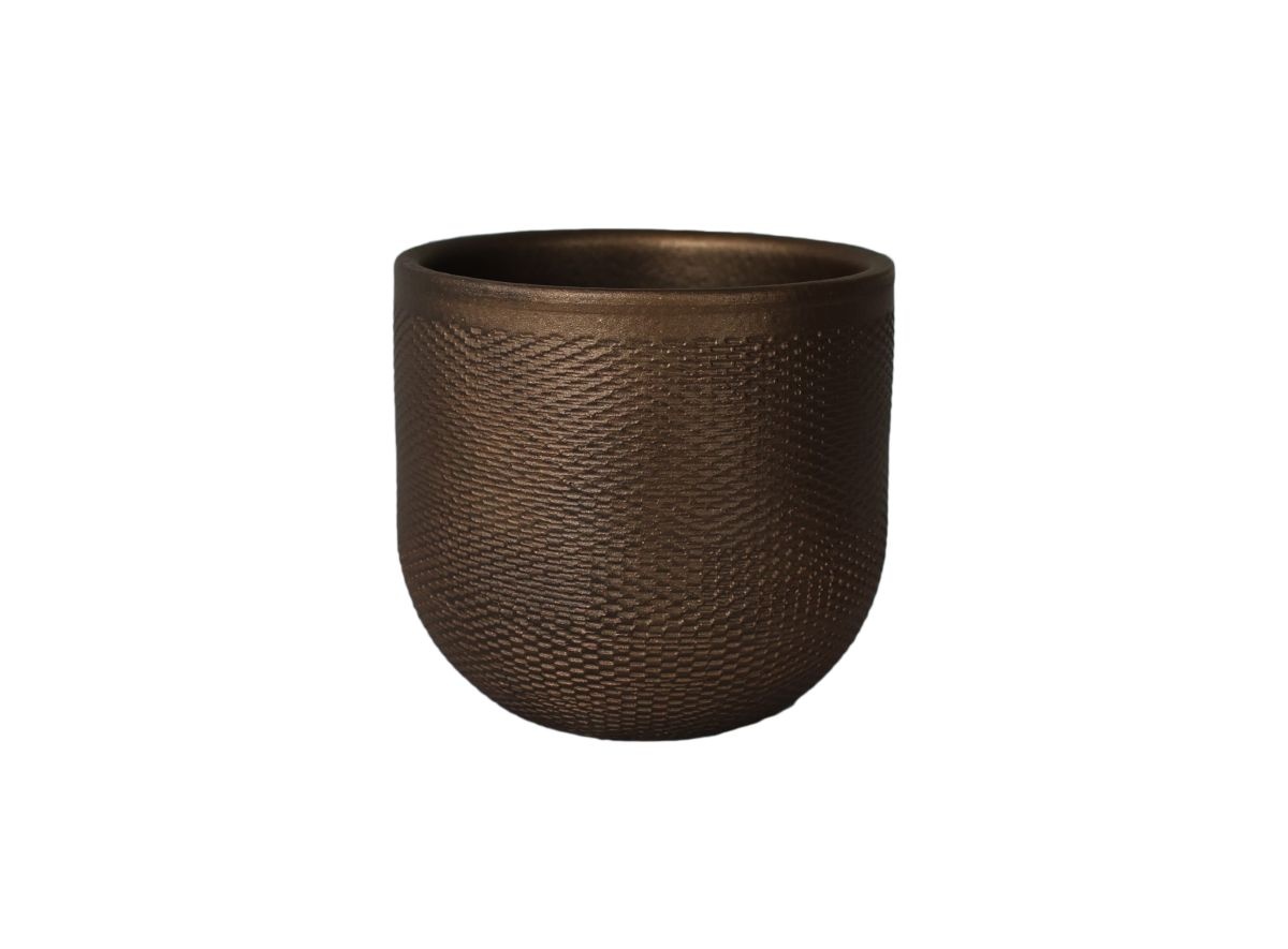 De Brons kleurige potten in de lijn Davos van HS Potterie zijn stoer en robuust te noemen. De gladde keramische buitenkant met ruw reliëf in de pot hebben een eigenzinnige uitstraling wat weer een heel mooi effect geeft. Lees meer