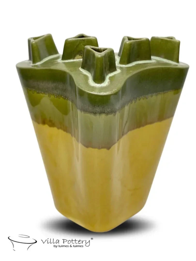 De groen geel kleurige vazen in de lijn Chimney hebben een strak uiterlijk en valt op door de scherpe lijnen. Wanneer men deze zogenaamde tulpenvaas ziet, weet men waar de naam Chimney vandaan komt. Door de strakke buitenkant met zijn verfijnde kleur is de vaas een echte blikvanger. De kwaliteit van de vaas en de hoge afwerkingsgraad maken de vaas onmisbaar voor elk interieur.