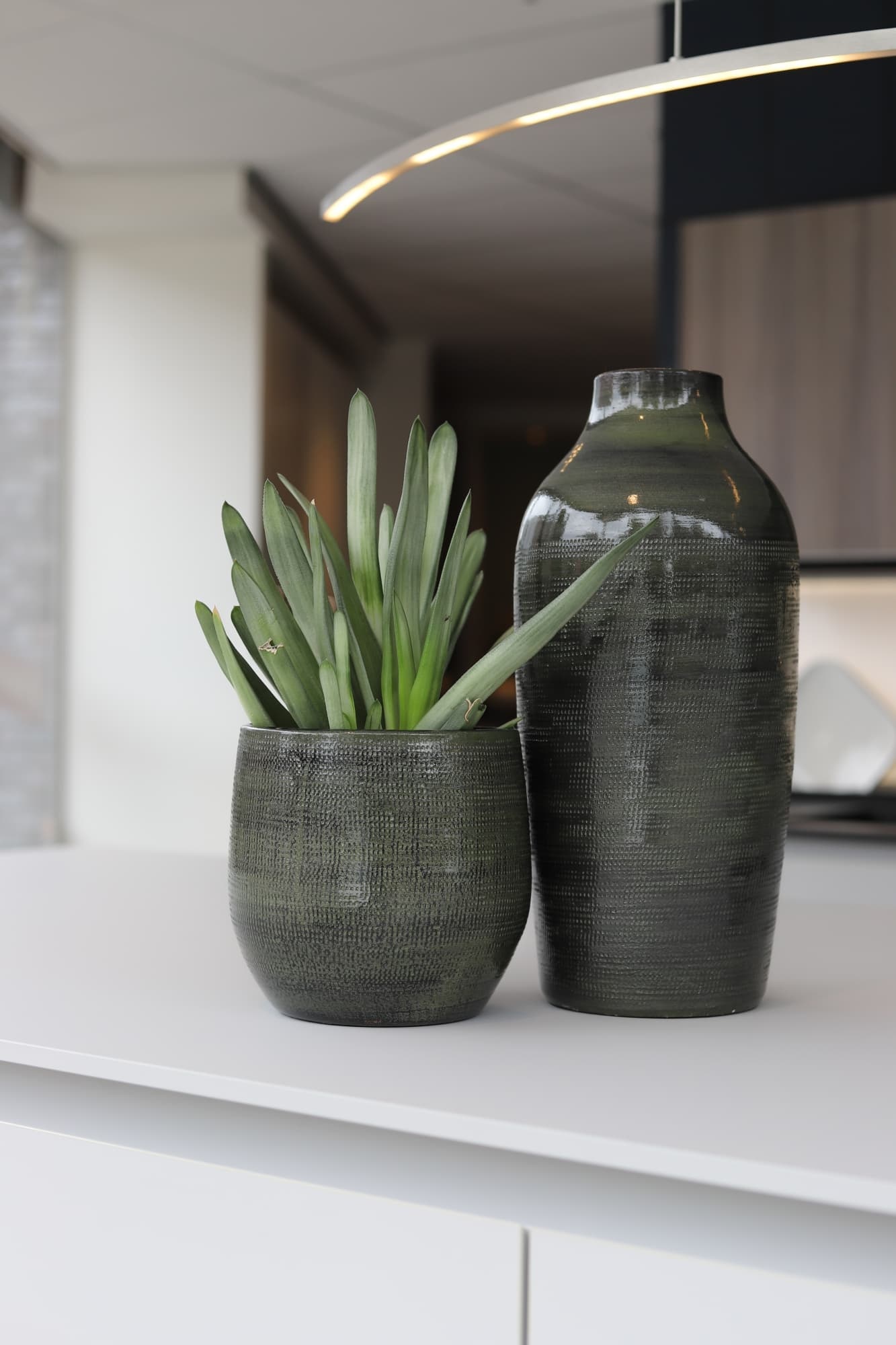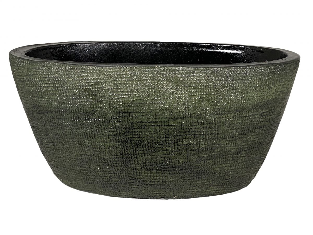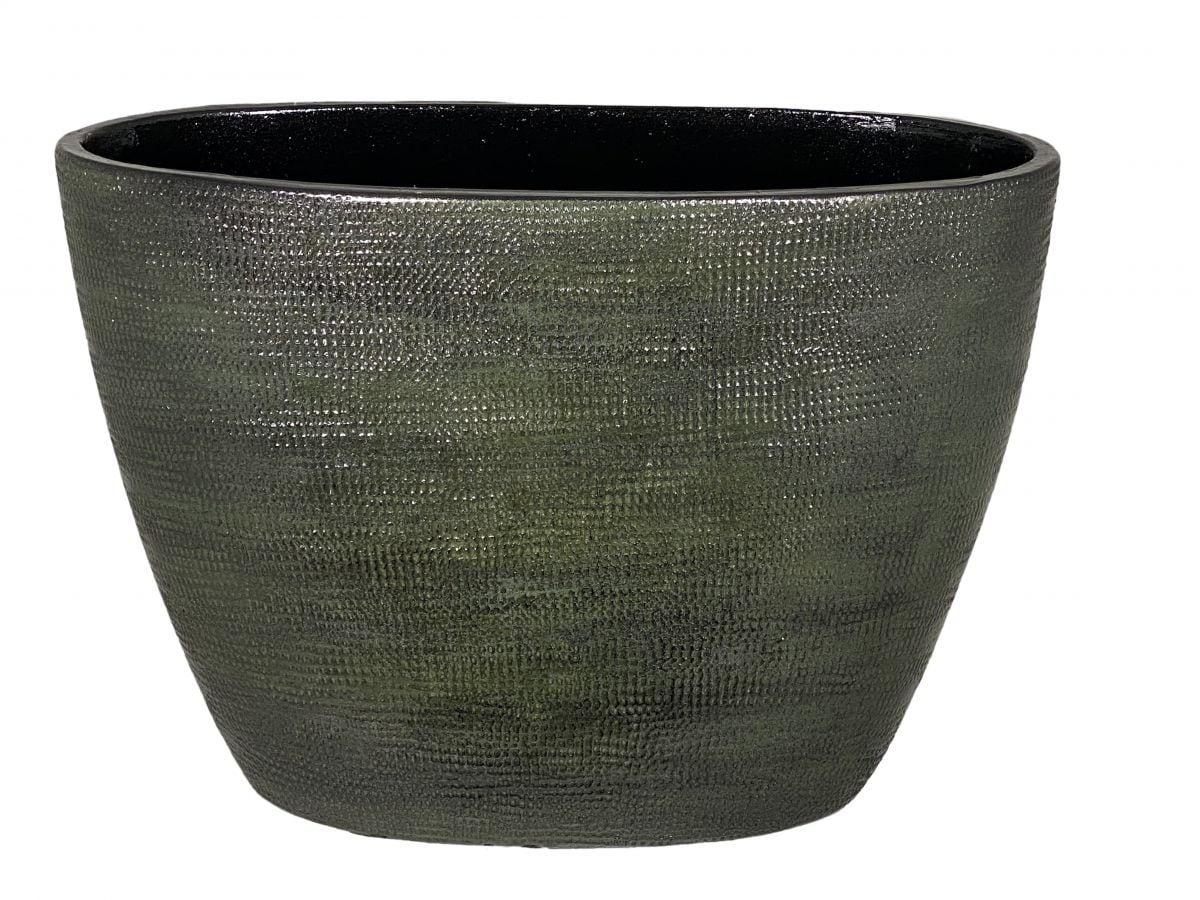 de rustiek groenkleurige potten in de lijn Tokio van HS Potterie zijn stoer en robuust te noemen. De gladde buitenkant met ruw reliëf in de pot hebben een eigenzinnige uitstraling wat weer een heel mooi effect geeft met de kleuren van de pot.