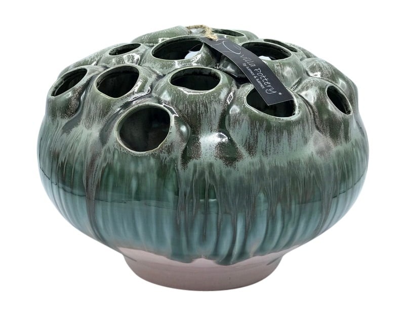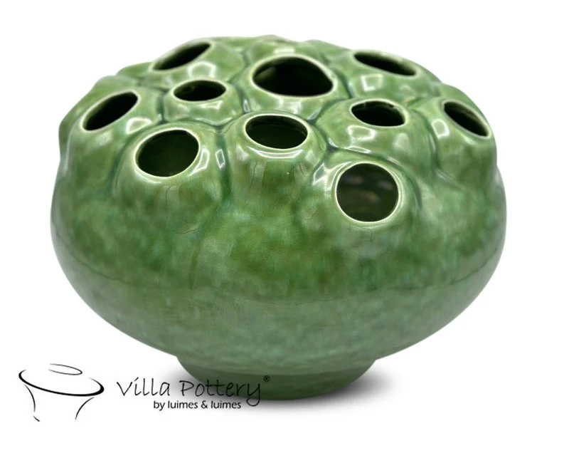 In de lijn Coral een leuke groen gekleurde vaas met vele speelse openingen, om zo een kleurrijk geheel te creëren. Een vaas met vele openingen wordt ook vaak wel tulpenvaas genoemd.