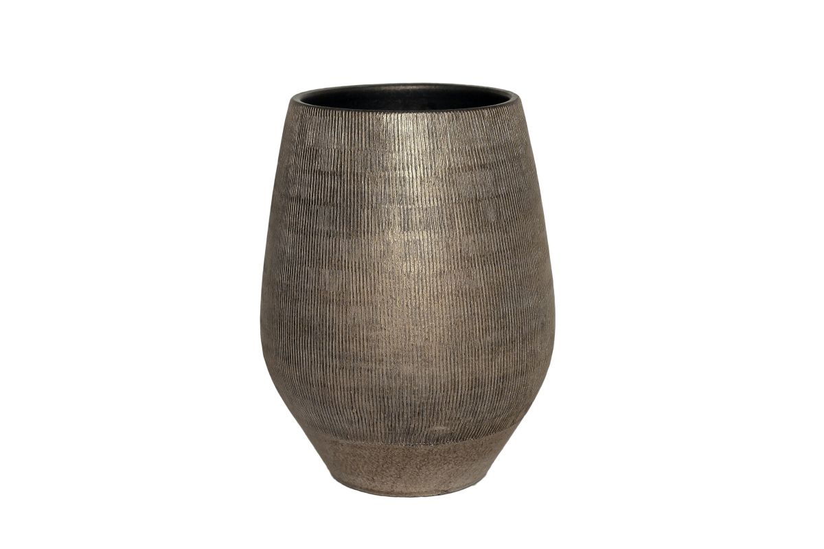 Goud Zwarte pot Hamar De potten uit de Hamar lijn kenmerken zich niet alleen door de verticale lijnen in reliëf, maar ook dat ze twee kleurig zijn. De buitenzijde en binnenzijde zijn verschillend. Dit geeft een stoer en modern uiterlijk Lees meer