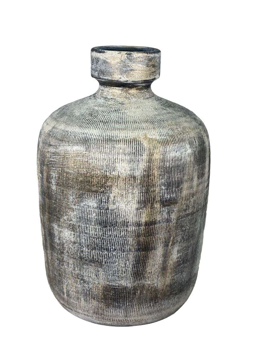 De kruik of fles Miami zwart-cement is een niet alledaagse kruik welke net dat beetje meer geeft aan de ruimte welke het verdient. De ruwe buitenkant van de kruik, met het gewassen cement, geeft met de groene kleur net die bijzonder eigenzinnige uitstraling voor elke ruimte.