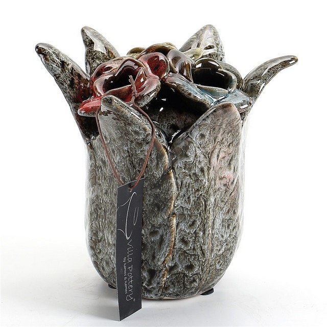 Deze vazen kenmerken zich door hun vrolijke uiterlijk in heel veel frisse kleuren met een mooi afgewerkte bloem in het midden van de pot