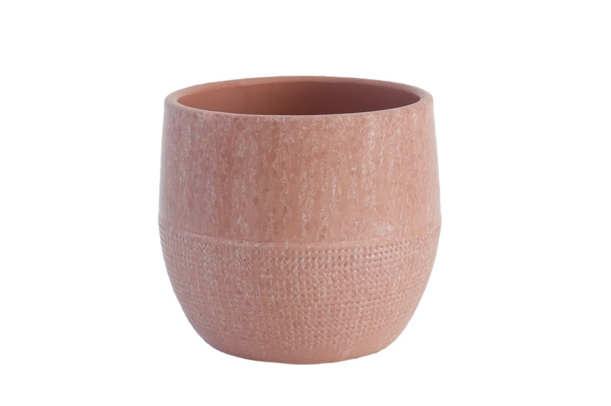 de rustiek roze potten in de lijn Lugo van HS Potterie zijn stoer en elegant te noemen. De buitenkant met het verfijnde reliëf in de pot hebben een eigenzinnige uitstraling wat weer een heel mooi effect geeft met de kleuren van de pot.