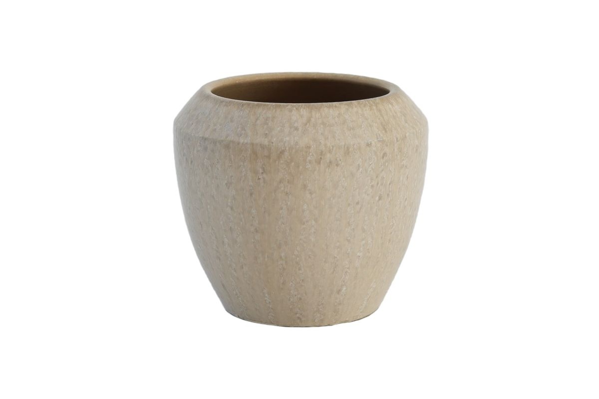De rustiek beige kleurige potten in de lijn Marseille van HS Potterie zijn stoer en robuust te noemen. De gladde buitenkant met glans heeft een eigenzinnige uitstraling wat weer een heel mooi effect geeft met de kleuren van de pot.