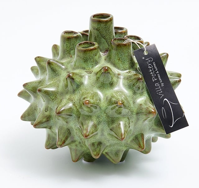 De bloemenvaas Pickle is een bolvormige speelse vaas met meerdere openingen voor de bloemen en natuurloijk de opvallende punten! Door zijn opvallende en niet allerdaagse uiterlijk is de Pickle lijn een aanwinst voor elk interieur. Het geeft elke bloem de extra waarde die het verdient. Wilt u net iets anders dan anders, dan is de Pickle lijn een mooi begin