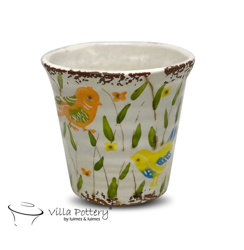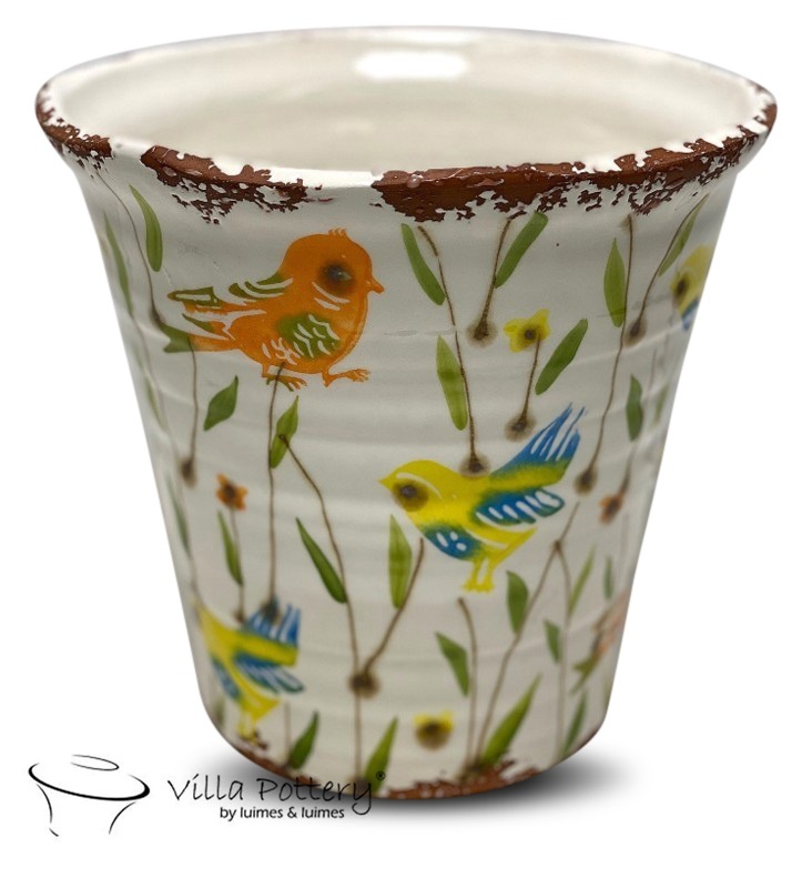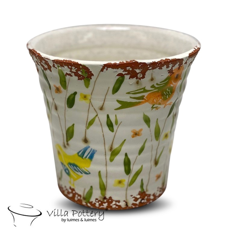 Deze keramische pot-vaas van de Babette collectie heeft een veelzijdige zomerse, kleurrijke uitstraling, de pot is met de hand geschilderd. Deze pot is beschilderd met veelzijdige vogels en groene takken, de kleurrijke uitstraling geeft een gezellige sfeer en zal veel vreugde opleveren.