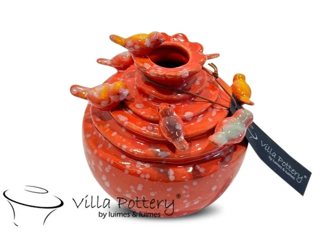 De rode vaas Grenada "vogelvaas" is een bolvormige vaas met een kleinere opening met speelse vogels op de rand welke met fleurige bloemen een speels geheel creëert Door zijn natuurlijke lijnen en ronde kraag is de blauwe vaas Grenada een aanwinst voor elk interieur. Het geeft elke bloem de extra waarde die het verdient. De speelse vogeltjes op de rand geven net dat beetje extra wat het geheel boeiend maakt