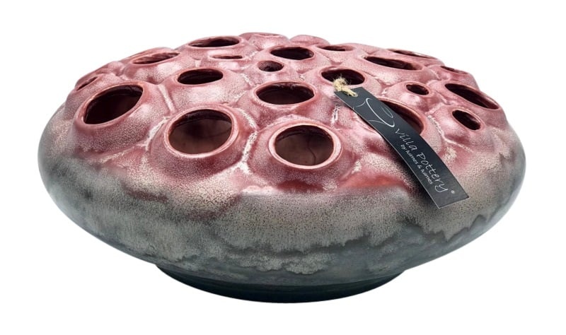 In de lijn Coral een leuke modern roze gekleurde vaas met vele speelse openingen, om zo een kleurrijk geheel te creëren. Een vaas met vele openingen word ook vaak wel tulpenvaas genoemd.
