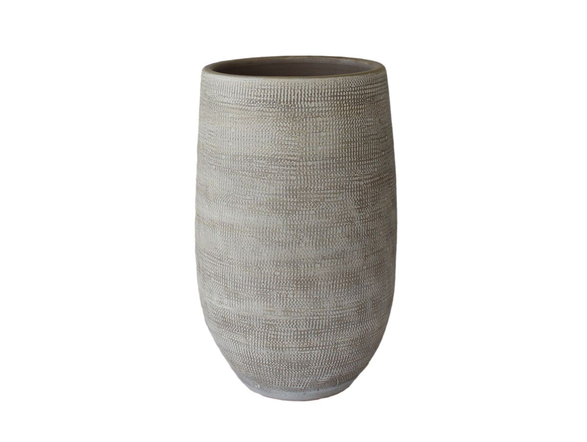 Taupe Vaas - Pot Tokio, de taupe kleurige vaas - potten in de lijn Tokio van HS Potterie zijn stoer en robuust te noemen. De gladde keramische buitenkant met ruw reliëf in de pot hebben een eigenzinnige uitstraling wat weer een heel mooi effect geeft. Lees meer