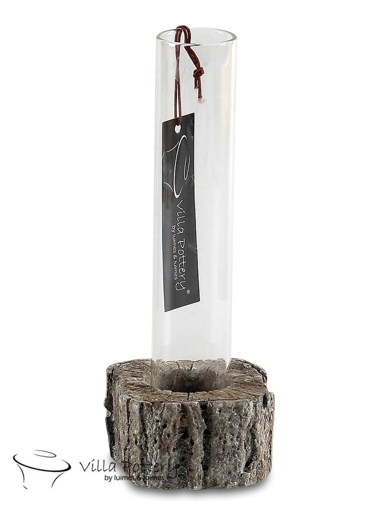 De vazen uit de Bhutan lijn bestaat een houten look voet en een glasbuis. De lijn voorziet in enkele vaasjes tot een plateau van 25 vaasjes. Door de houten look en zijn verfijnde bewerkingen zijn de vaasjes een echte blikvanger. De houten look voeten zijn gemaakt van steen/beton. De kwaliteit van de vaasjes en de hoge afwerkingsgraad maken de vaas onmisbaar voor uw interieur